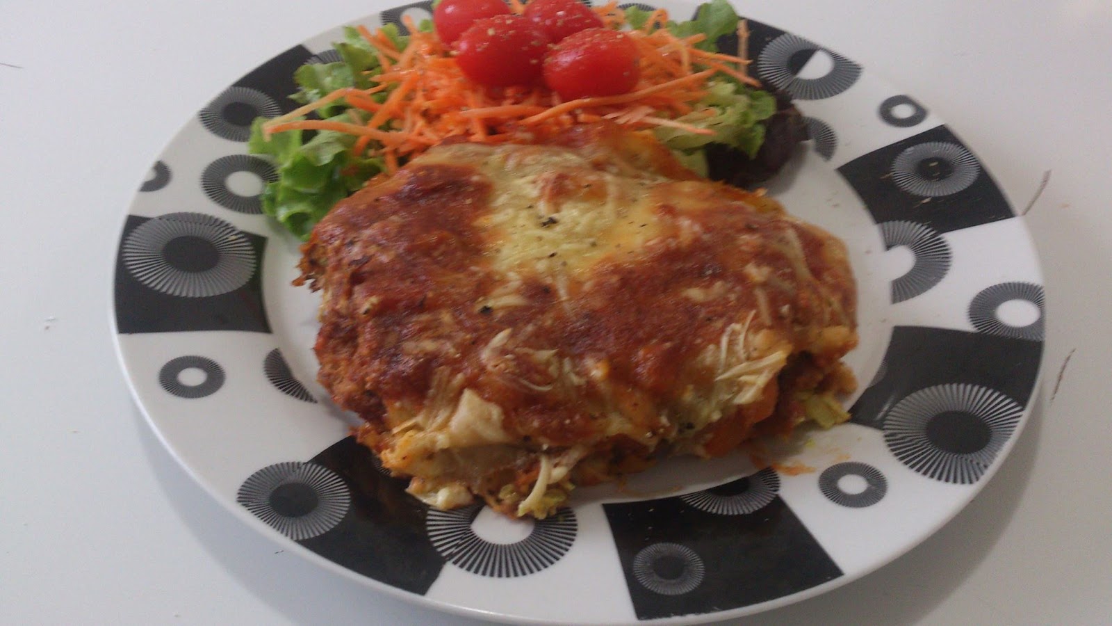 Eu fiz a massa com dois copos de farinha de trigo, dois copos de água, um pouco de margarina e um tabletinho do tempero "Meu segredo", mas pode colocar também 1 pacote de sopa creme de cebola.